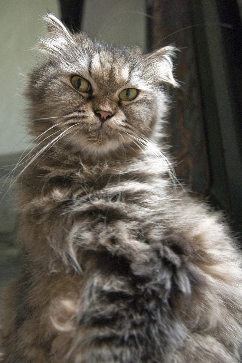 Bij deze opname heb ik de camera laag bij de grond gehouden en naar boven gefotografeerd. Het geeft een wat speelsere foto van poes Mimi en je kijkt haar goed in het gezicht.