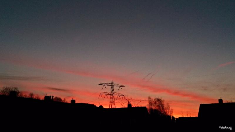 'Vandaag is rood' zong Marco Borsato en ja, dat was ook echt zo! Wat een geweldige zonsopgang die op een zeker moment de lucht vuurrood liet kleuren zoals is te zien op deze foto. Mooi wakker worden dit.