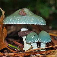 Deze kleine groene glibberige paddestoel is de echte kopergroenzwam. Ik heb hem voor het eerst van mijn leven gezien.