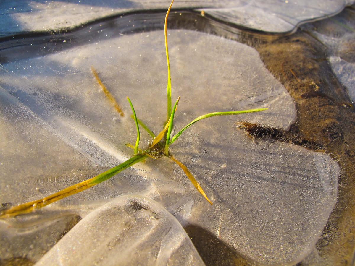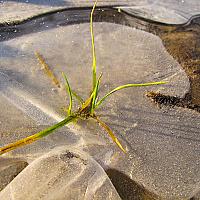 Grasplantje vast in het ijs