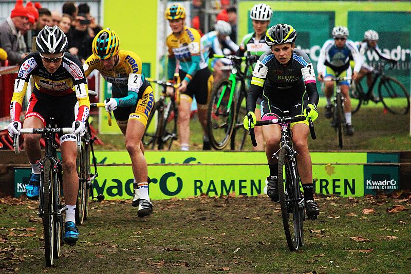 Belgisch en Europees kampioene Sanne Cant aan werk op de Antwerpse Scheldecross.
