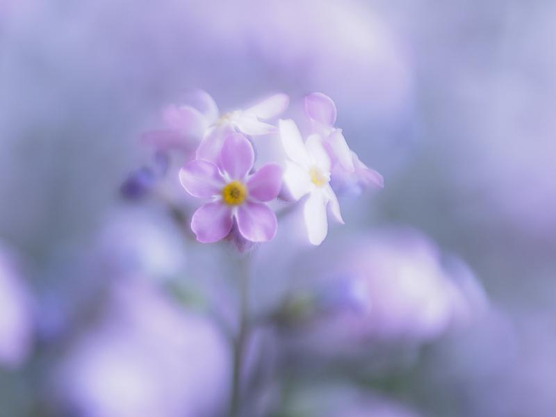 De foto is gemaakt met de Lensbaby Sweet 50 lens, en 1 macroconverter. Ik heb gefocused op 1 ' trosje' bloempjes van het hele plantje...daardoor zijn in de achtergrond vaag allerlei vage roze bolletjes te zien.