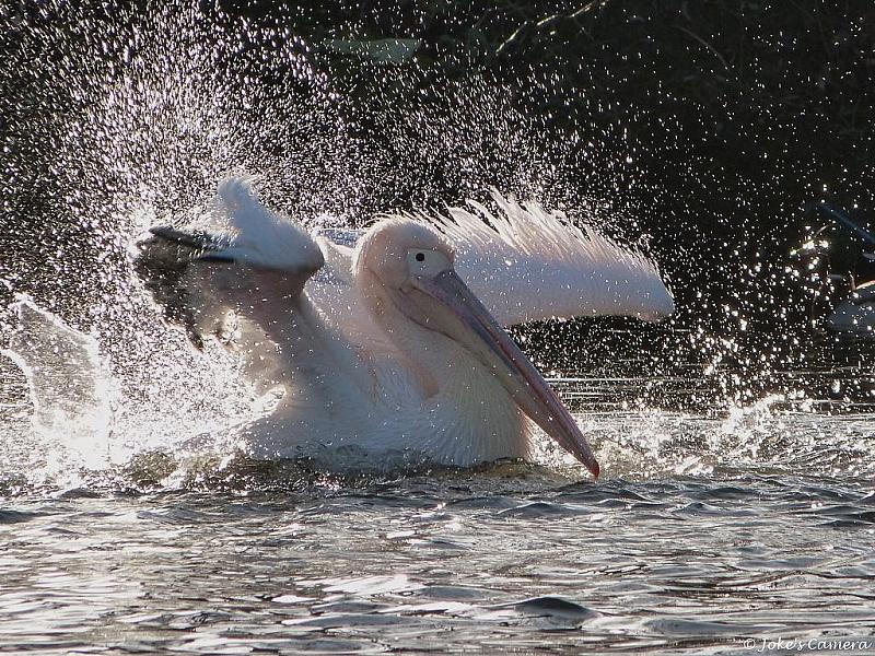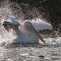 Een Pelikaan in Avifauna neemt een verfrissend bad.