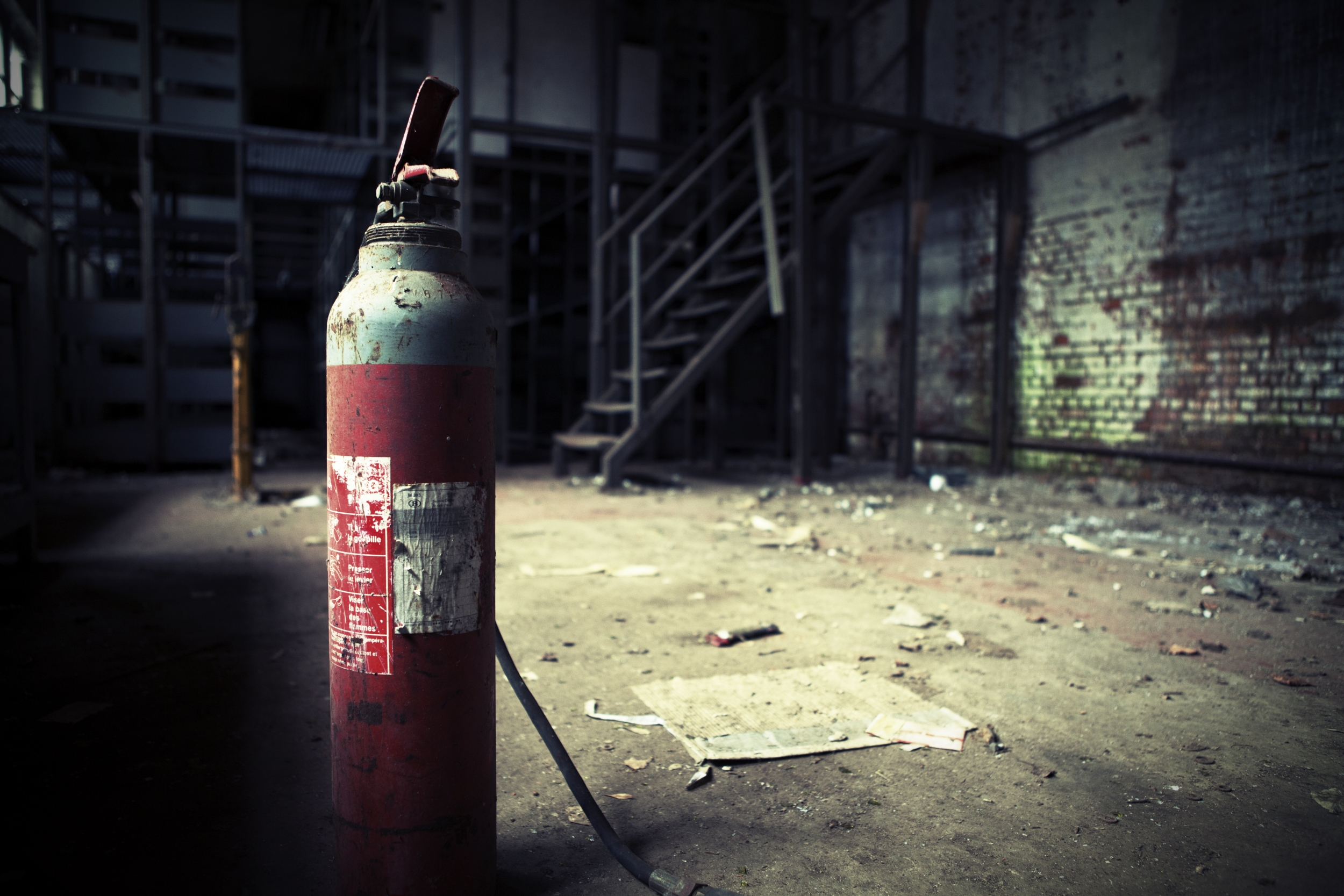 Op mijn eerste echte urbex excursie naar België kwam ik daar een brandblusser tegen, vooral het mooie contrast van de rode blusser voor de grauwe achtergrond vond ik erg gaaf.