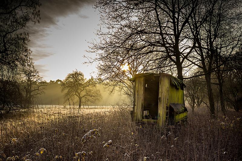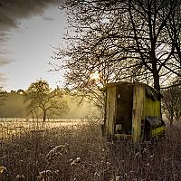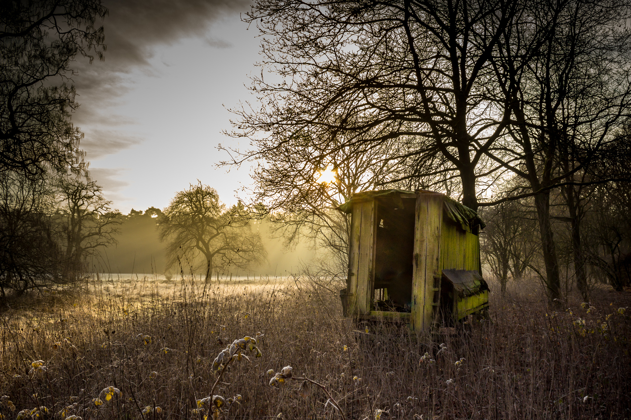 Verlaten karretje op een koude decemberochtend.
