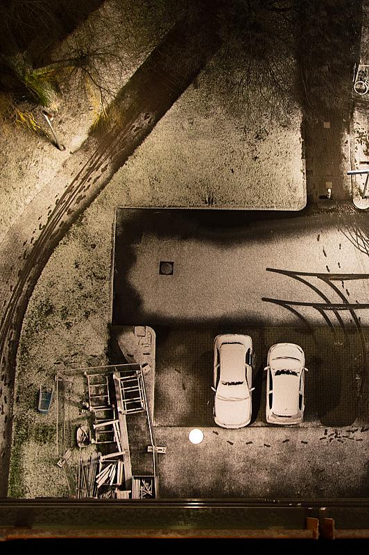 Sneeuw veranderd de omgeving. Een gewoon bos wordt een prachtige sprookjeswereld, maar ook een nachtelijke parkeerplaats gezien vanaf het balkon krijg opeens een heel andere uitstraling...
