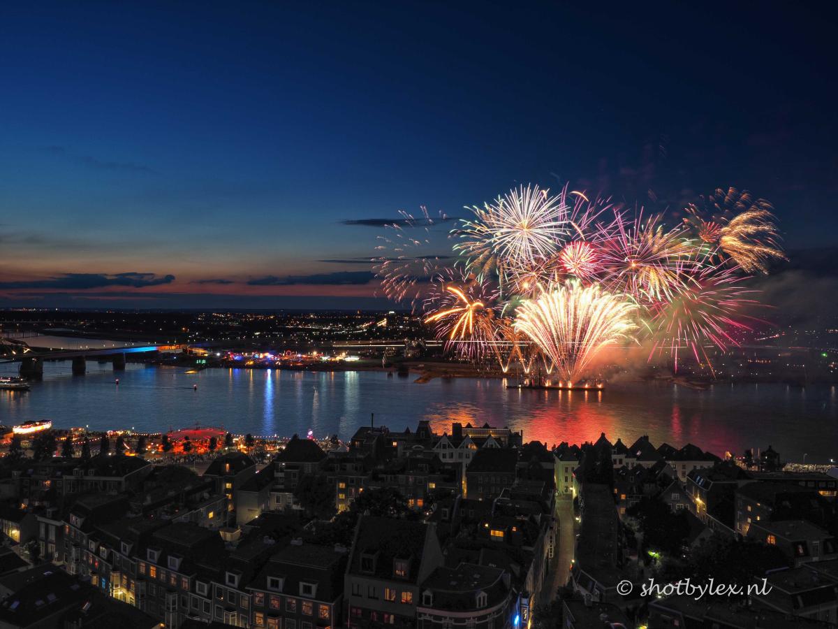 Vierdaagse vuurwerk in Nijmegen, gezien van de toren van de st Stevenskerk