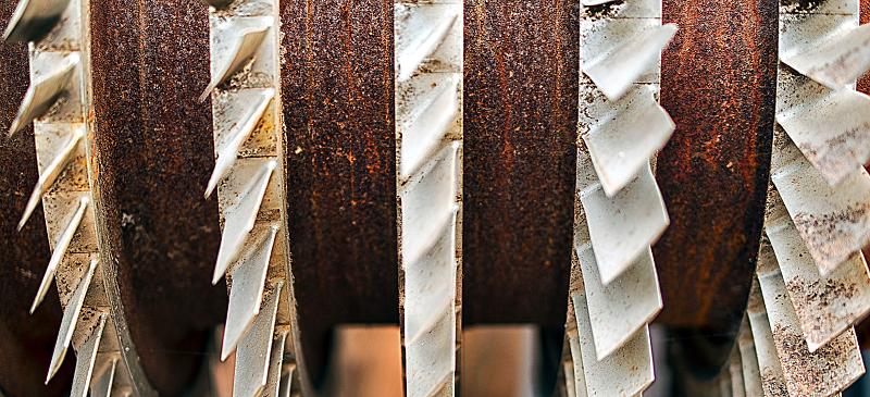 Foto gemaakt op een Urbex locatie te Landschappark te Duisburg. Wat je ziet zijn een deel van de oude schoepen van de generator van dit zeer grote complex.