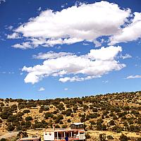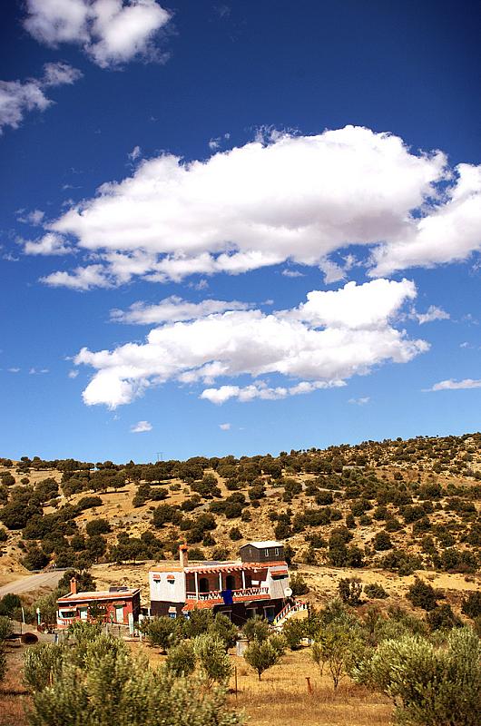 Villa in the middle of nowhere with a clear sky and beautiful clouds.