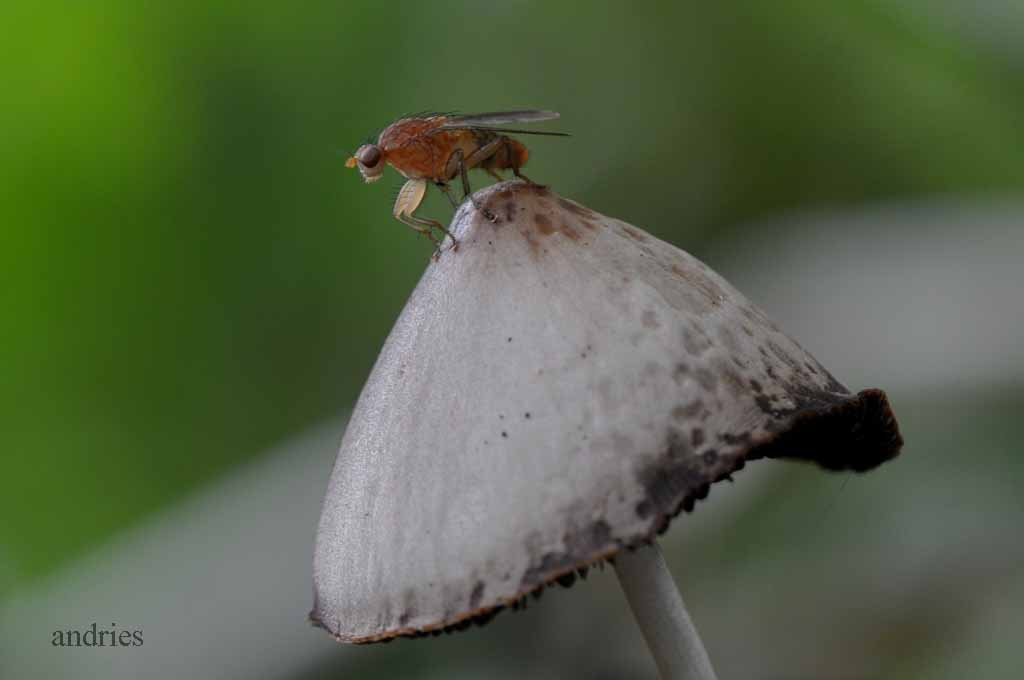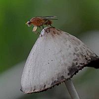 vlieg op een paddestoel.