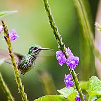 Tijdens een jungle tour door Manu National Park in Peru verbleven we een nacht in het nevelwoud. Na een fikse regenbui kwamen kolibries eten aan de bloemen die in de tuin van de lodge stonden.