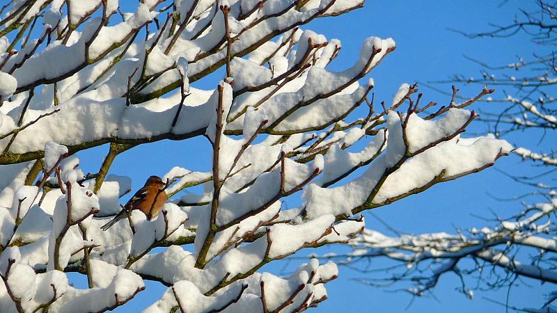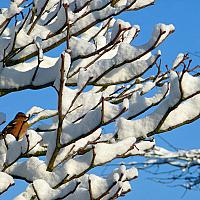 Vogel in besneeuwde boom (december 2012)