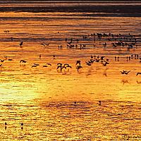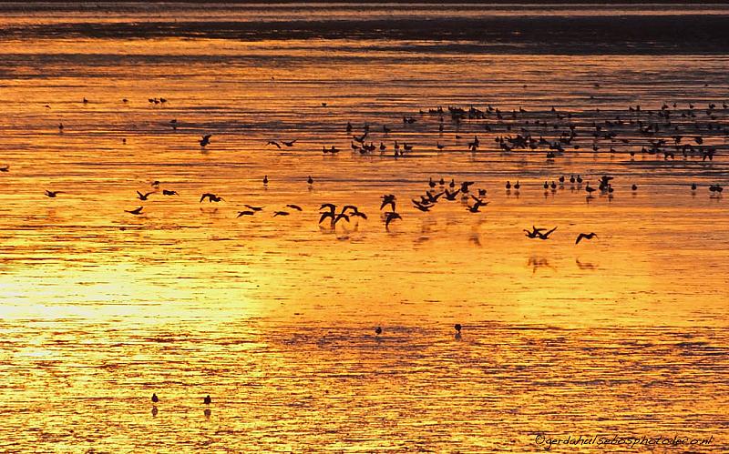 Duizenden vogels trokken plotseling over en landden in de „pot met goud" op het Wad bij Lauwersoog