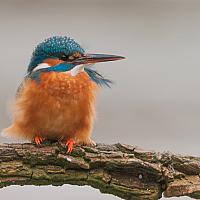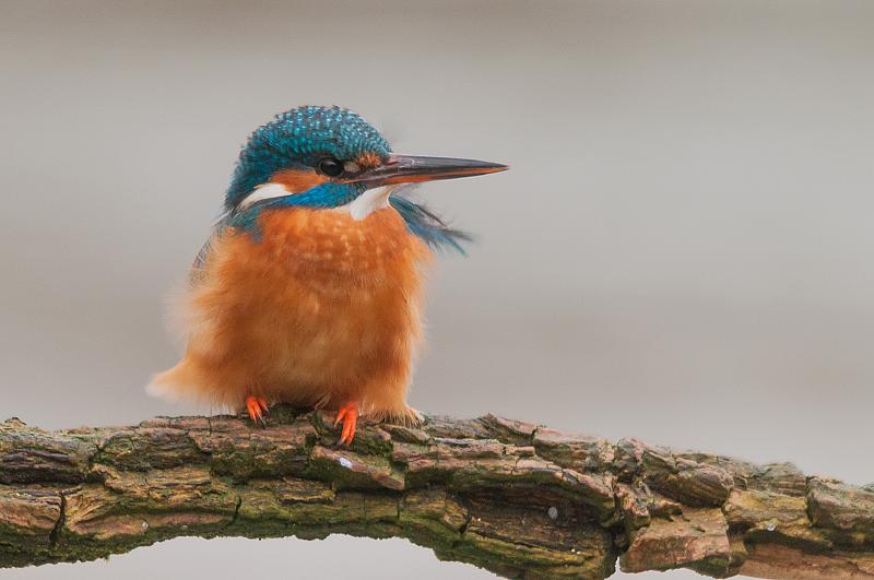 Dit mooie jonge ijsvogeltje zat vol in de harde wind, wat een mooi effect gaf op de veertjes...