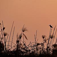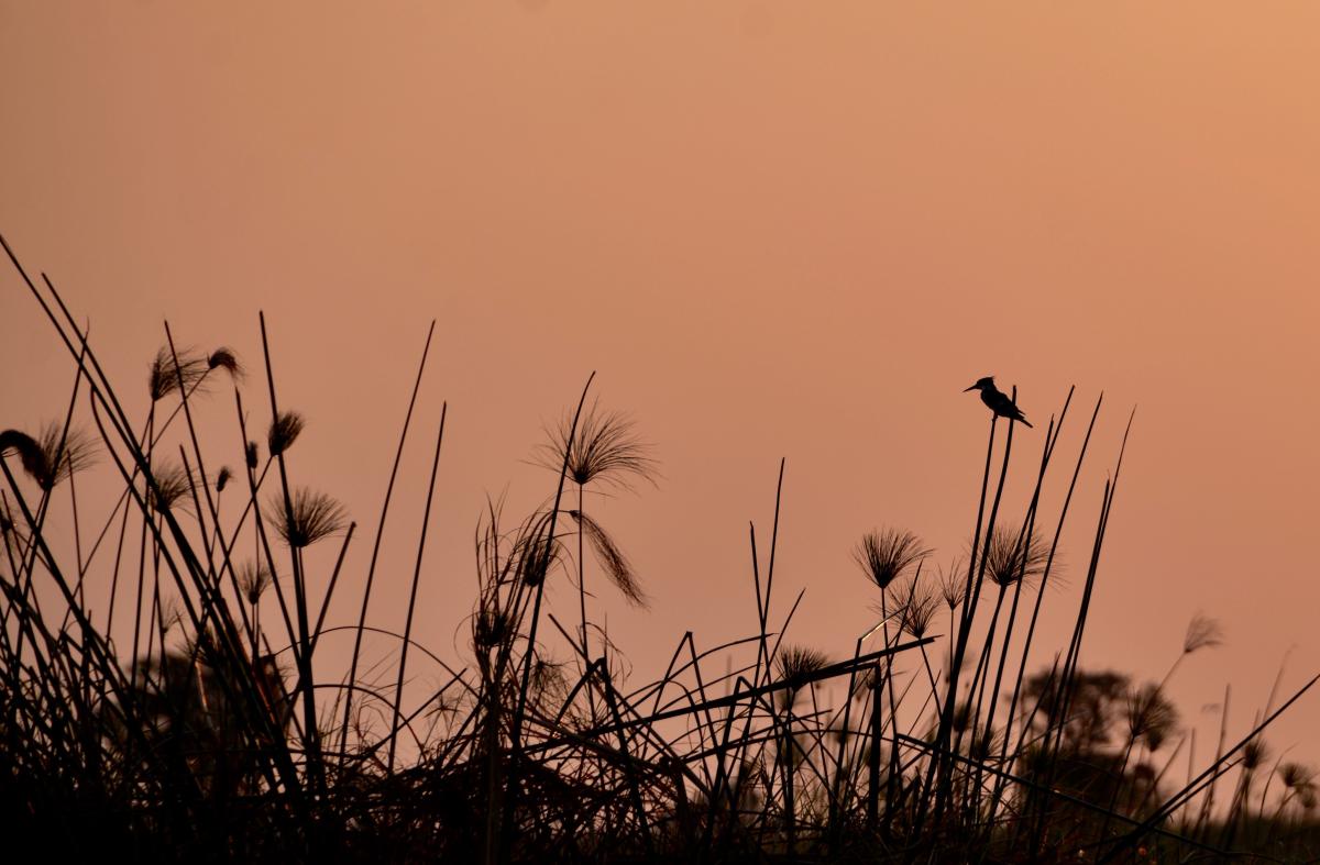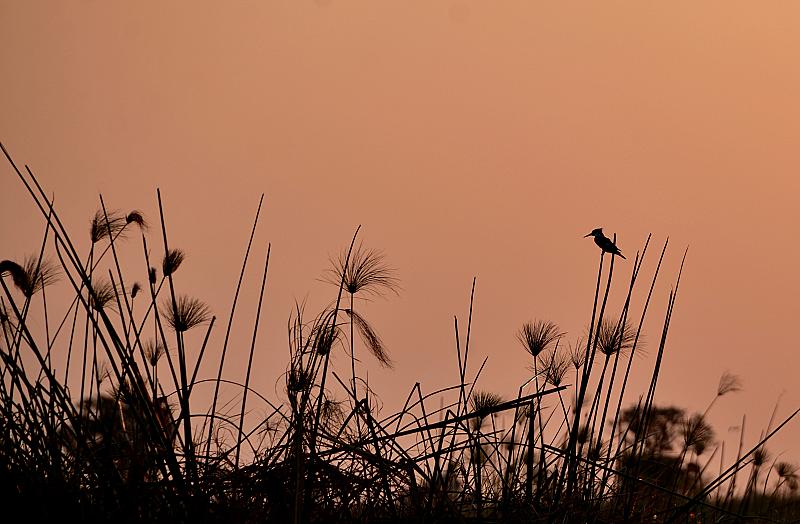 in Botwana in the wetlands gaat de zon prachtig onder en zat deze kingfisher nog even te wachten op een laatste hapje