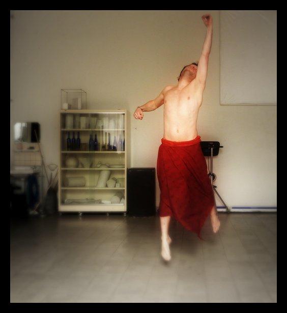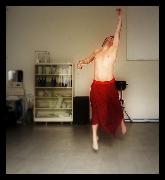 dit zelfportret met statief en timer maakte ik in de academie voor beeldende kunsten te mechelen tijdens een koffiepauze, het effext van de waas maakte ik via een fotowebsite en een dzich daarop aangeboden application. Nu de beweging maakte ik zelf en ik liet de timer op het juiste moment zijn werk doen. toch een prijs waard niet?