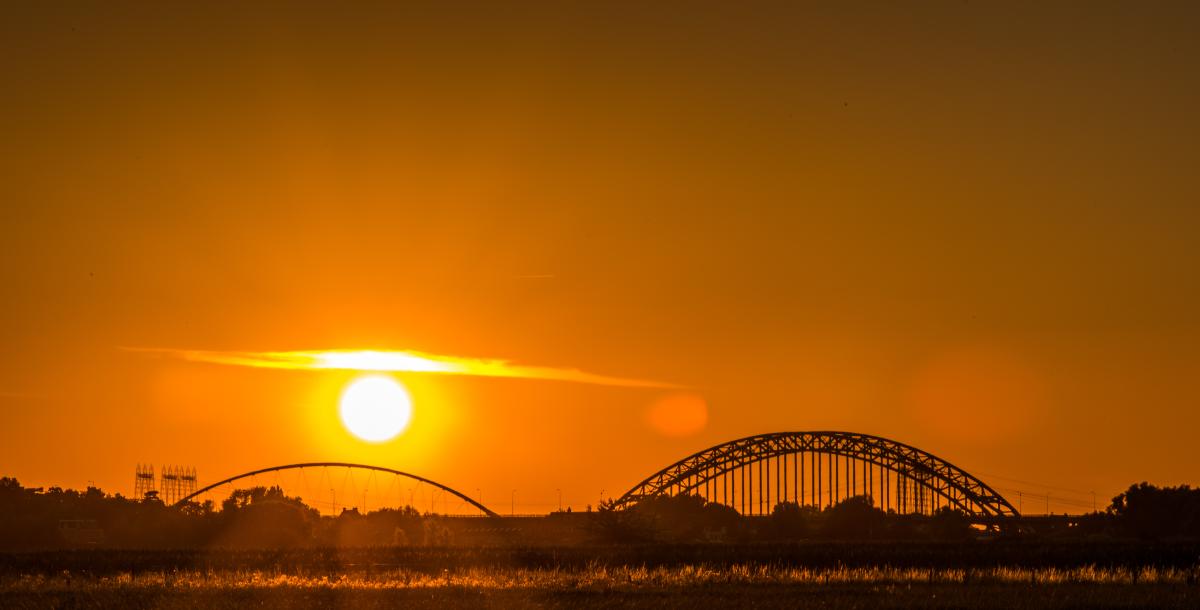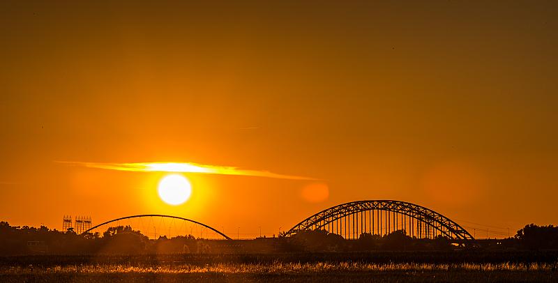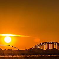 De 2 Waalbruggen bij Nijmegen in het gouden uur