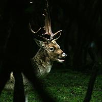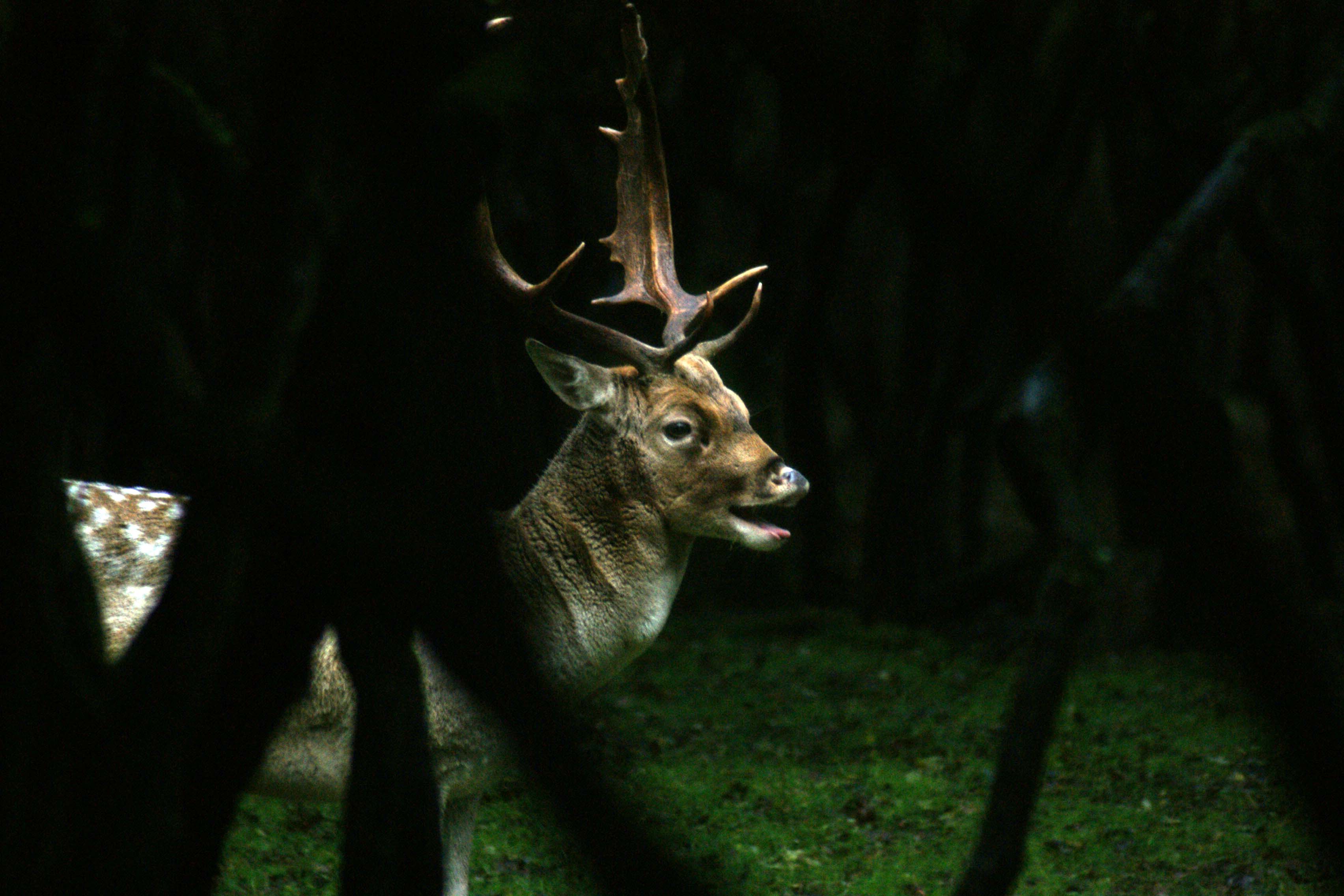 Deze foto is opgenomen in de duinen, tussen de bossen door een rondloerende damhert-bok op zoek naar zijn vrouwen.
