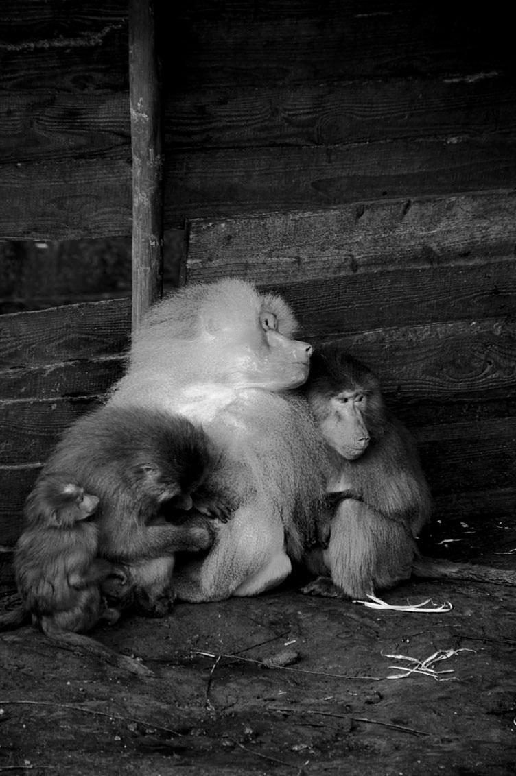 Inmiddels is het al weer bijna januari. Het was een zonnige maar koude dag en deze Bavianen familie zitten in het schrale zonnetje uit de wind lekker warm bij elkaar. De foto is gemaakt in Dierenpark Amersfoort.