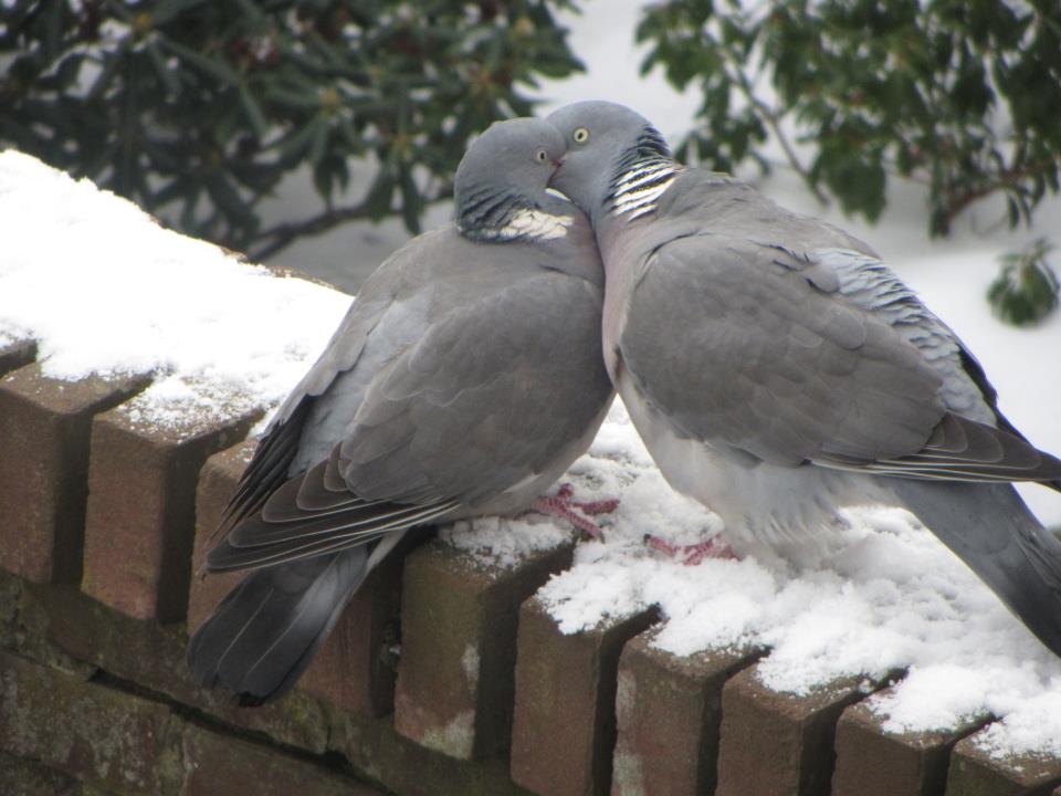 Ik stond bibberend op het balkon en zag deze duiven. De kou veranderde zich snel in warmte.. Sneeuw op dit plaatje, beschouw ik als de wolken, want ook door middel van het beleven van de mooiste gevoelens kan men vliegen..