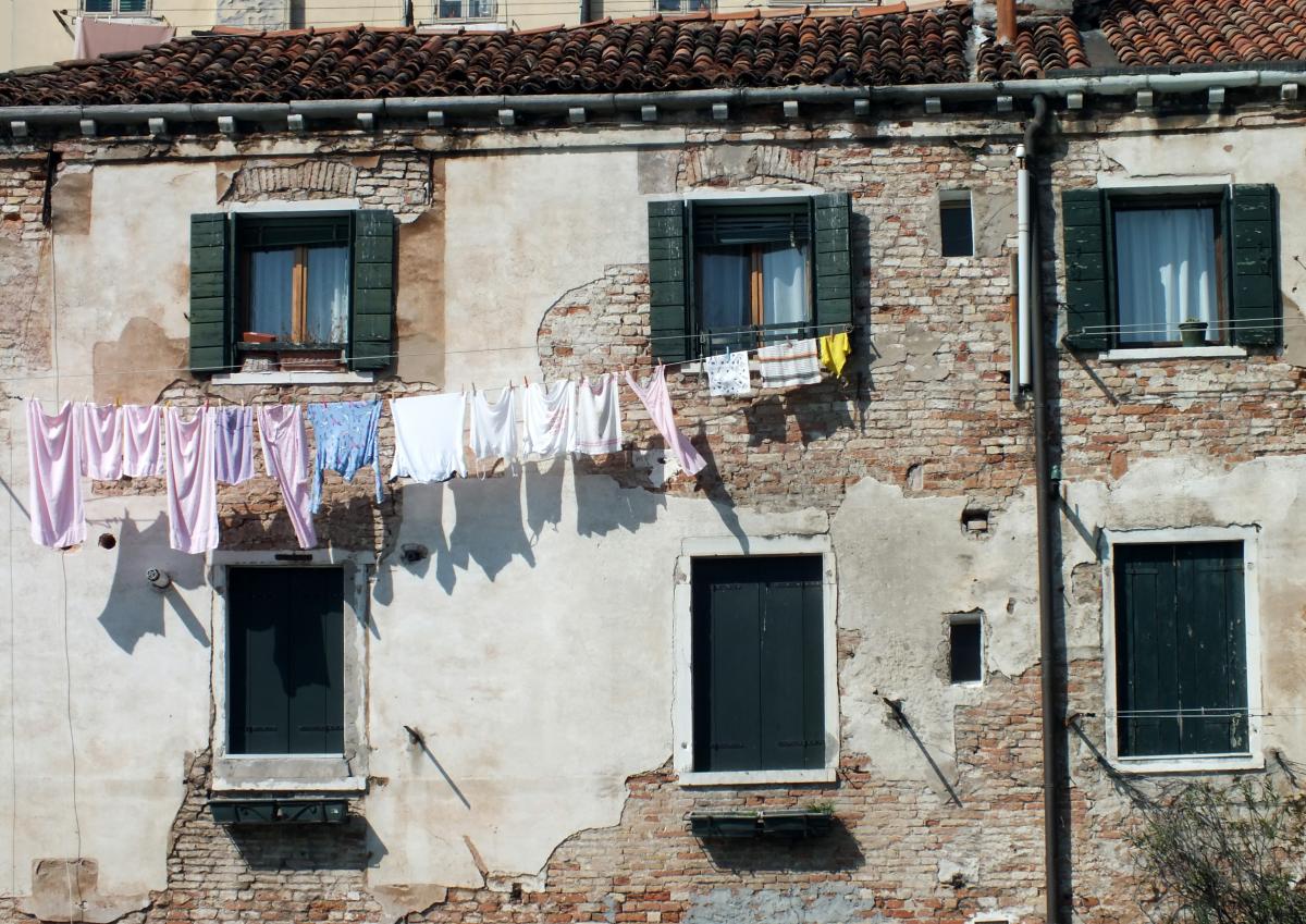 Zelfs de was, gedrapeerd tegen een oude muur.
