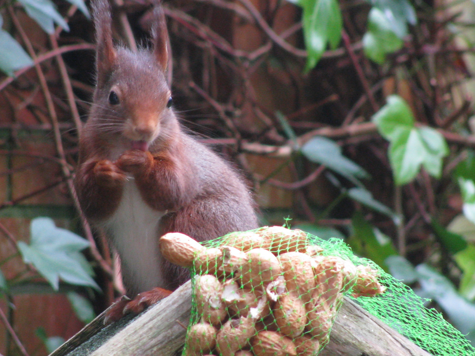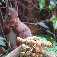 Op deze foto is te zien hoe een eekhoorn, na het eten van een paar nootjes, zichzelf wast.