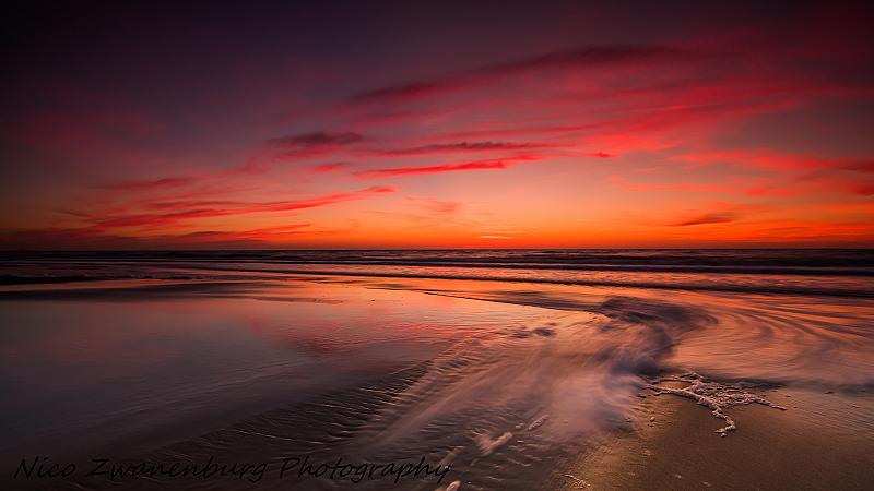 Het nagloeien van de wolken blijft toch wel een van mijn favoriete dingen om te fotograferen. Dit duurt meestal slechts enkele minuten, maar afgelopen zaterdag duurde het langer dan een half uur, en was het zeer intens. Door een sluitertijd te nemen van 1 seconde is de beweging van het water te zien, wat het beeld naar mijn mening iets interessanter maakt.