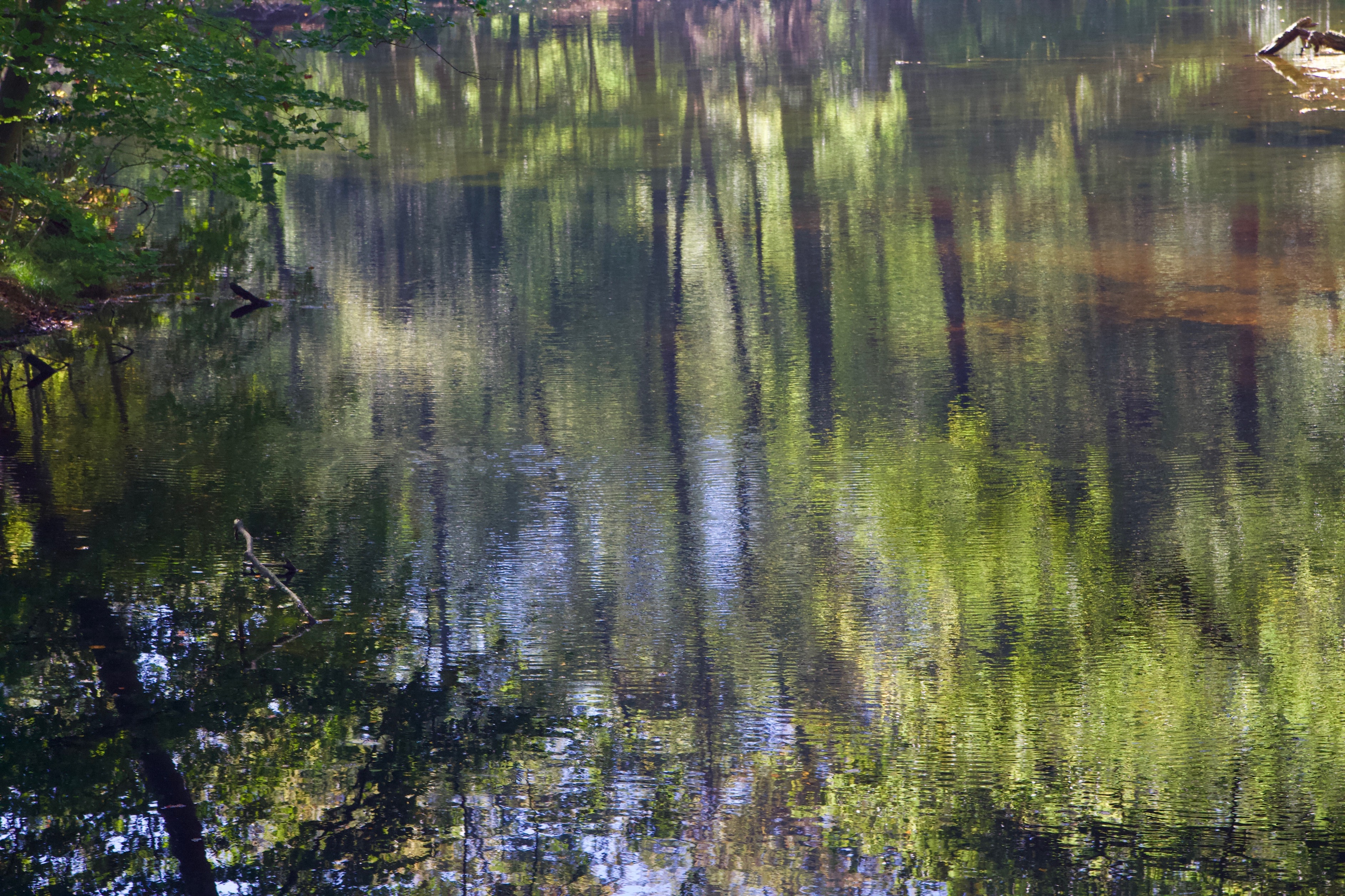 vandaag naar het bos gegaan om water te fotograferen maar door de lage zon was er heel veel reflectie en het water zag eruit als water in een sprookjesbos