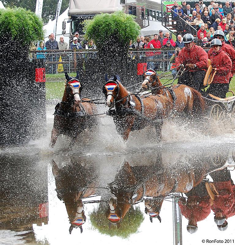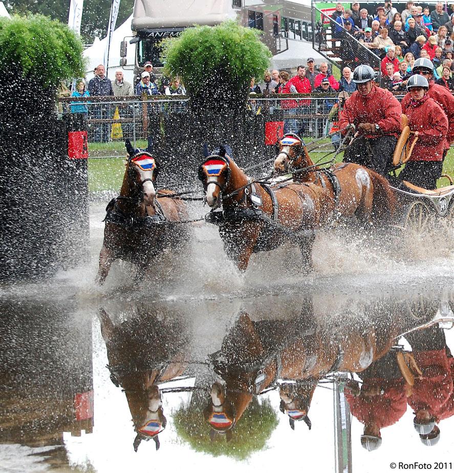 Paardenspektakel te beekbergen waar de vierspan door de waterbak gaat.