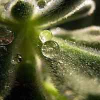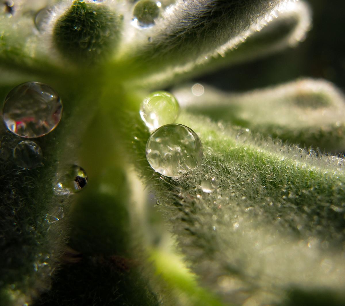 Waterdruppels op een groene vetplant, die ik in de zon heb gezet.