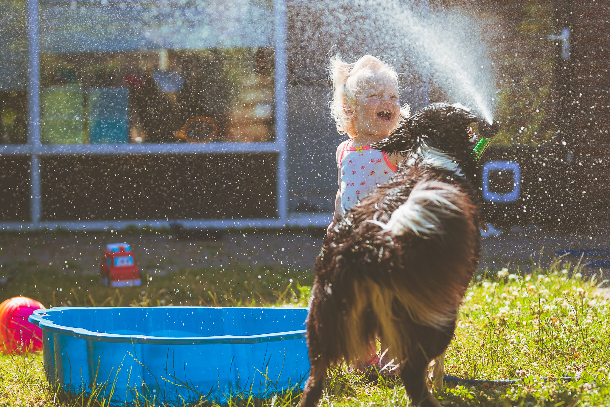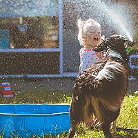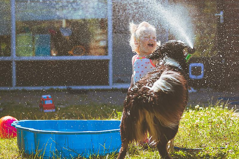 Het is zomer en zinderend warm. Wat doe je dan om af te koelen? Je pakt natuurlijk de tuinslang! Plezier gegarandeerd.