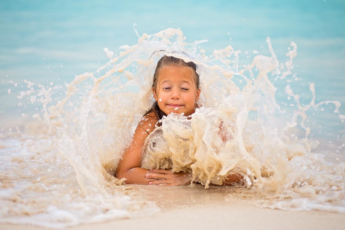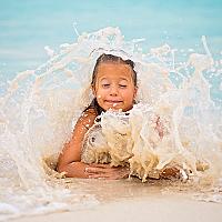 Tijdens onze vakantie aan de Caraïbische zee had ik graag een foto van mijn dochter aan de strand gemaakt. Ze bleef heel mooi liggen ook toen een van de golven haar volledig onder water kreeg. Het leek alsof de zee wilde een knuffel aan mijn dochter geven.