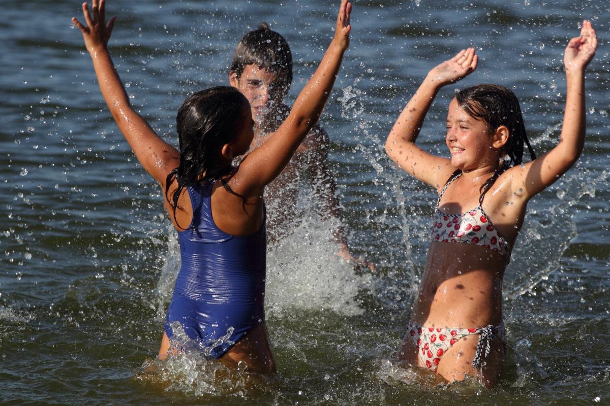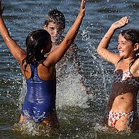 Op het Servische platteland kunnen de kinderen nog echt buiten spelen, in de plaatselijke vijver (hier dode arm van de Tisa, zijrivier van de Donau, in Curug, aug. 2012).