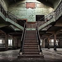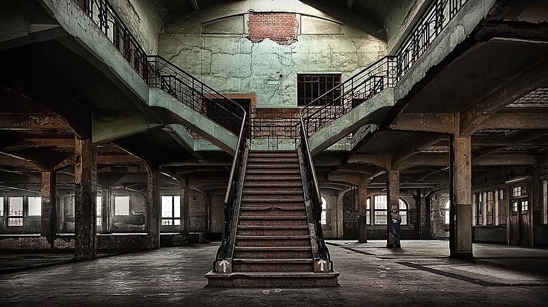 In het hoofdgebouw van de kolenmijn Waterschei in Belgie.......