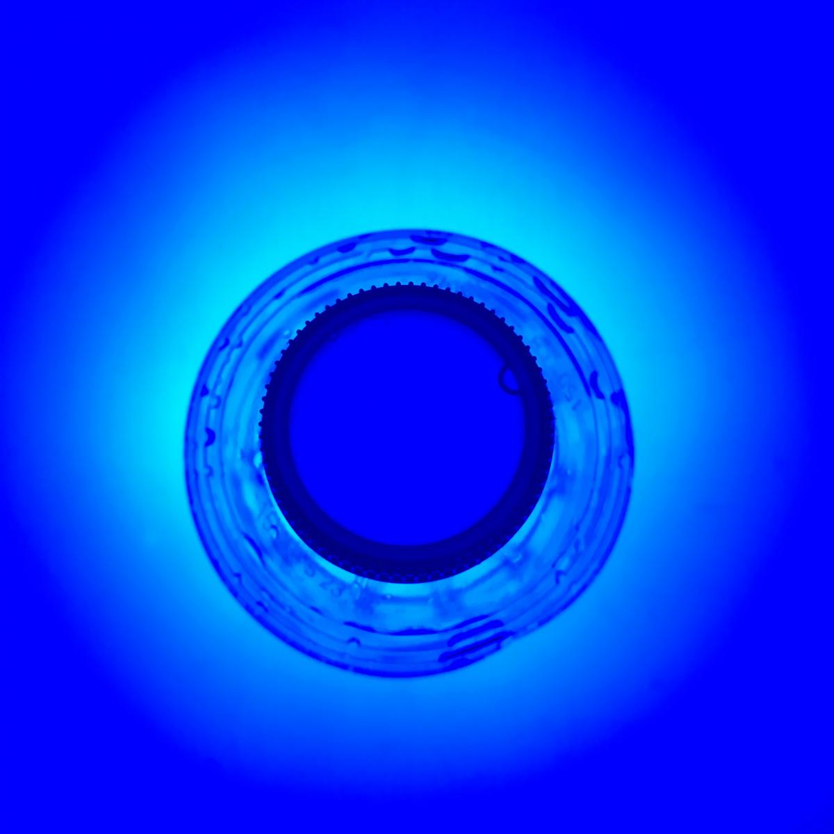 Met een flesje water in de hand naar het toilet en daar was deze blauwe lamp/tegel. Unieke foto kans.