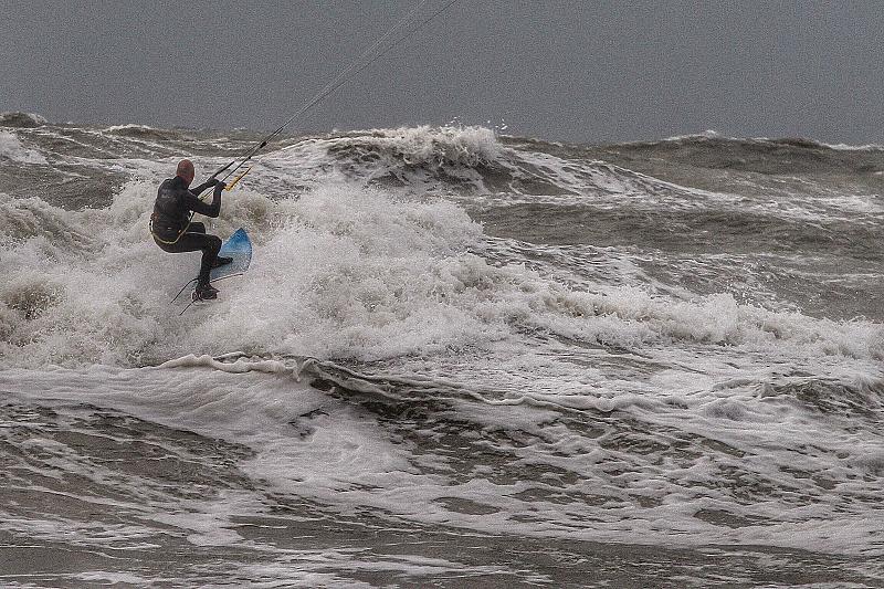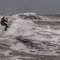 Een woeste zee met een moedige kiter.