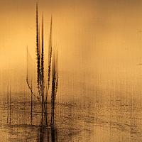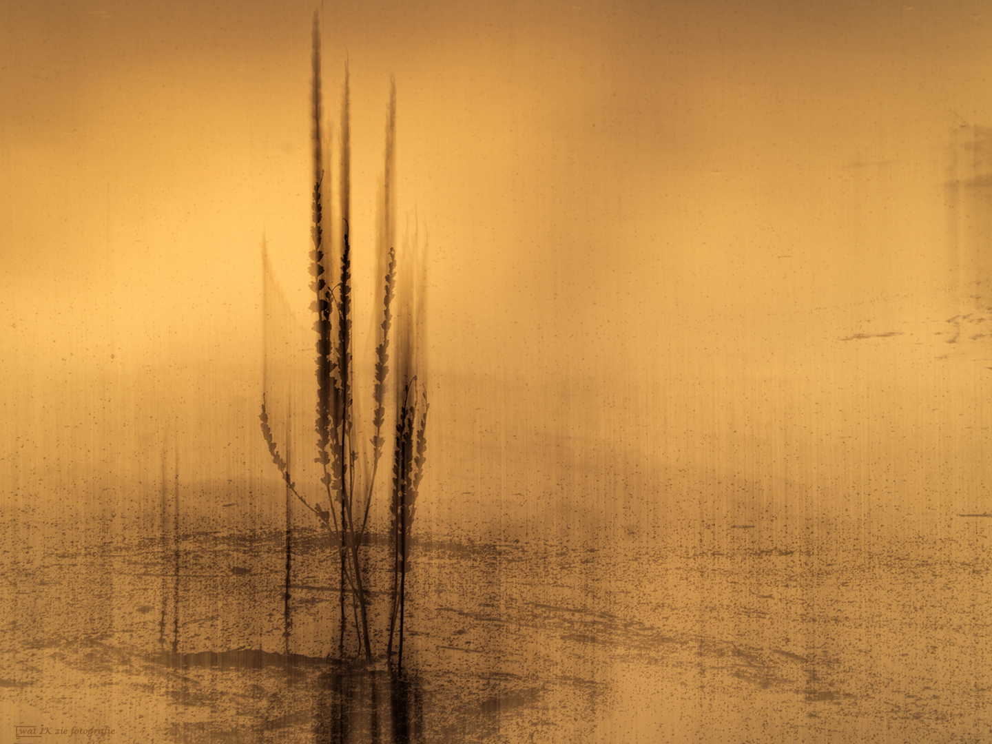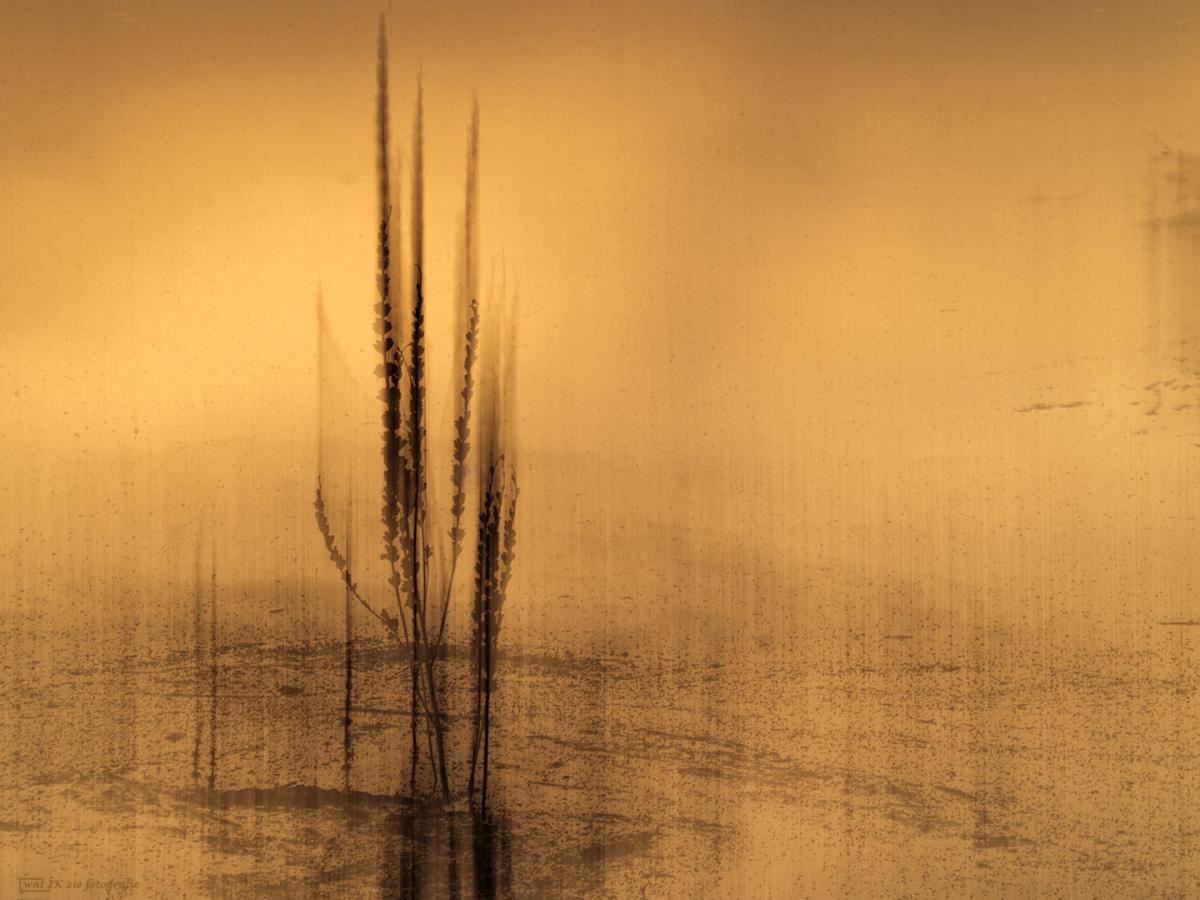 Een laagje ijs op het water, en onkruid dat er eerder groeide, mooi avondlicht en mijn camera.