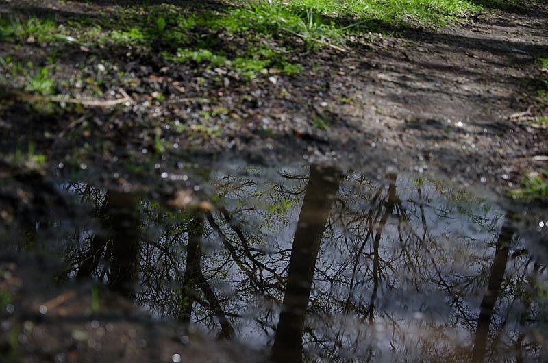 Door scherp te stellen op de weerspiegeling in de plas word het pad onscherp. Ik vind het zelf een spannende foto.