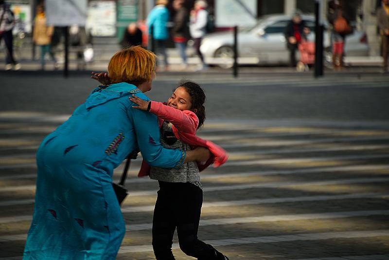 Niet in scene gezet. Moeder en dochter (?) worden herenigd op het station.