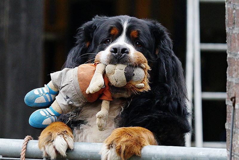 Staat iedere dag zijn baasje op te wachten met zijn knuffel.