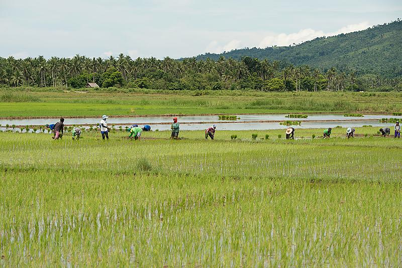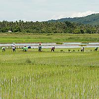 wij op vakantie en die mensen hard aan het werk, wel mooi te zien hoe dat allemaal handmatig gedaan wordt het planten van de rijst,