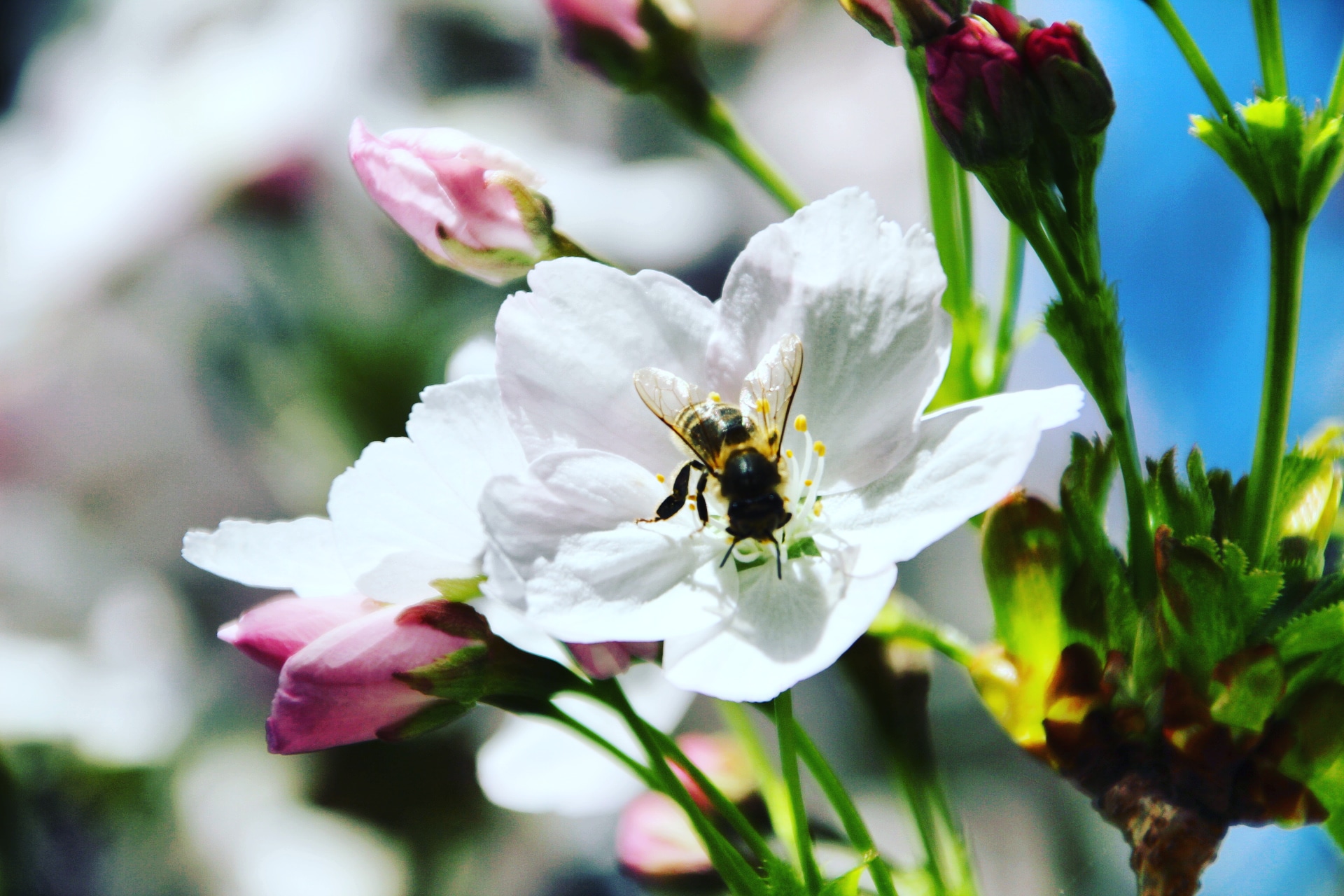 Wesp in de bloesem