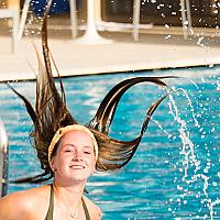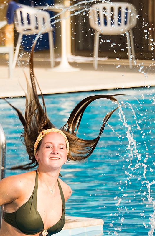 Play with long hair in a private swimming pool to see the waterdrops coming of this models hair. We had a lot of fun making this picture.