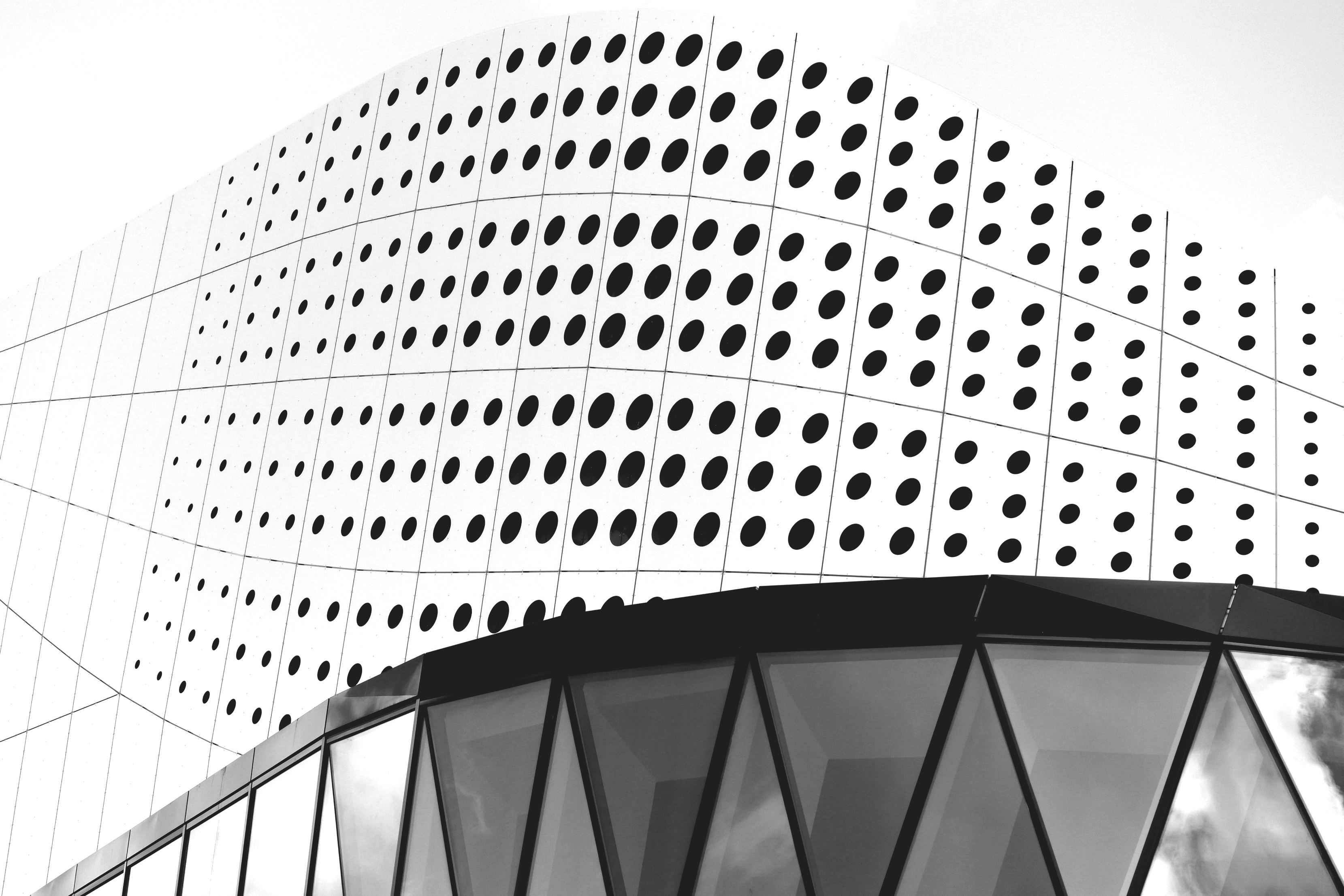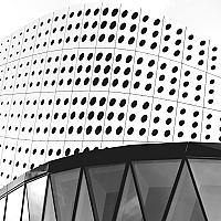 Prachtige architectuur, een combinatie van lijnen, bollen, vormen. Het lagere gebouw geeft de impressie van haaientanden.