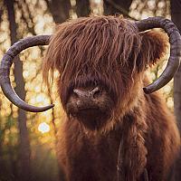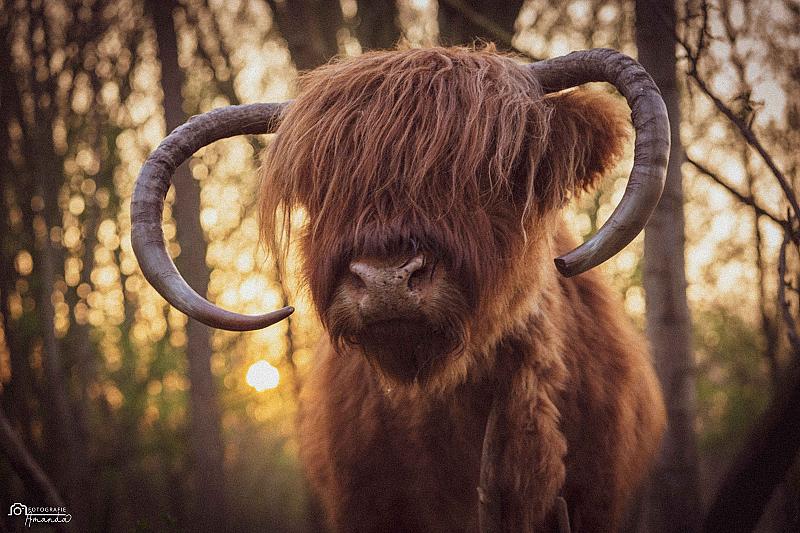 Deze Schotse Hooglander keek mij geïnteresseerd aan en poseerde heel even prachtig voor mijn lens. Daarna ging hij rustig verder met het krabben van zijn vacht aan een tak.