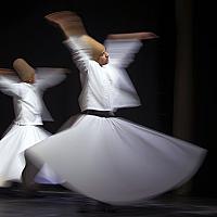 1/8e sec belicht om de beweging te laten zien. Tijdens het maken van de foto de camera in de richting van het draaien meebewogen (panning). Nadien op de computer nog wat kleine aanpassingen in contrast en scherpte. Tijdens het maken van de foto heb ik niet geflitst, het licht betreft kunstlicht van het theater.