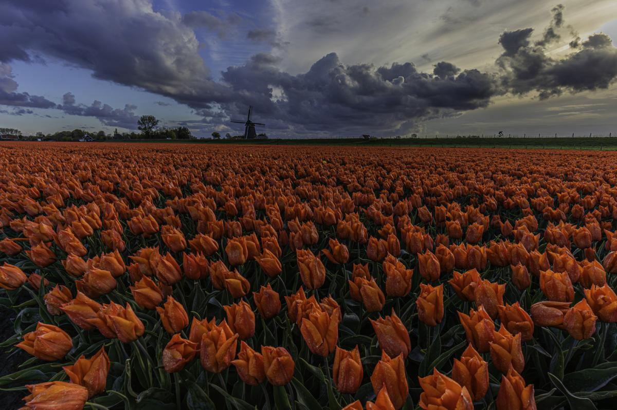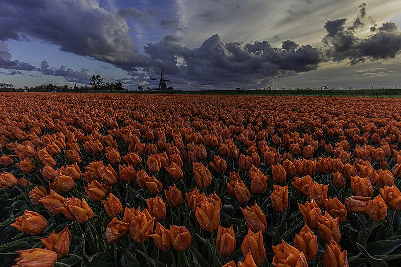 Vorig jaar een trein tussen de tulen gefotografeerd , nu zag ik de wielrenner aankomen..die geeft de foto toch wat extra's.