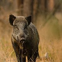 Een frontale ontmoeting met een fraai wild zwijn blijft altijd een spannend moment!