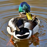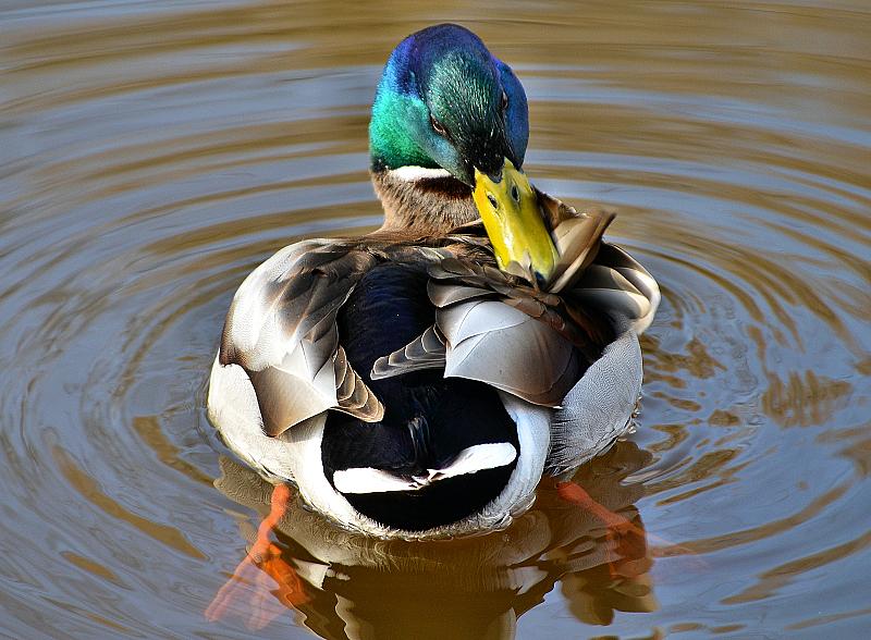 Prachtige groene kleuren op het hoofd van deze wilde eend.