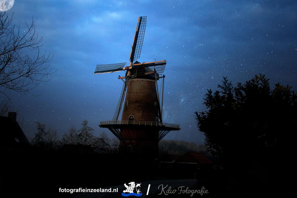 Molen de Korenhalm bij nacht